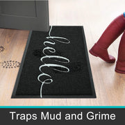 Anymat Doormat Black Hello Lettered PVC Non Slip Dirt Trap Absorbent Mat