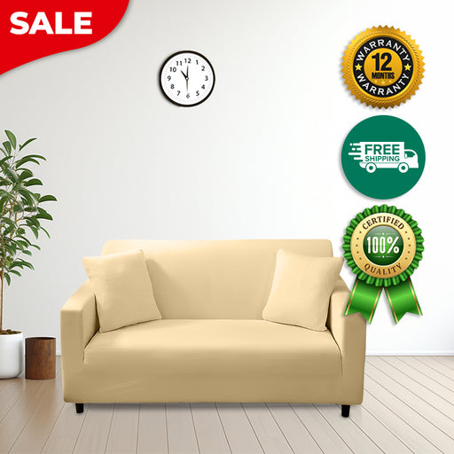 View full detailsAnyhouz 2 Seater Sofa Cover Plain Beige Style and Protection For Living Room Sofa Chair Elastic Stretchable Slipcover