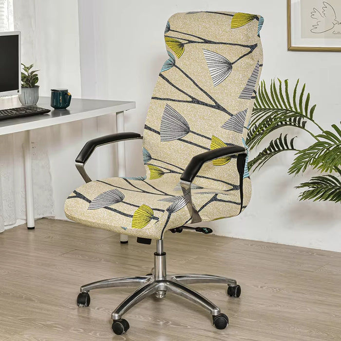 Anyseat Office Chair Cover Beige Geometric Floral Print with Zipper Elastic Stretchable High Back Protector Slipcover