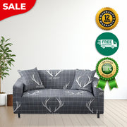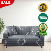 Anyseat Sofa Cover Gray Plaid Christmas Reindeer Horn Design Stretchable Non Slip Slipcover