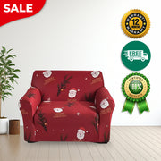 Anyseat Sofa Cover Maroon Christmas Santa Claus Design Stretchable Non Slip Slipcover