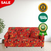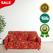 Anyseat Sofa Cover Red Christmas Reindeer Design Stretchable Non Slip Slipcover