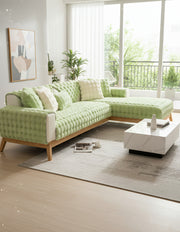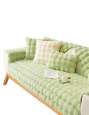Anyseat Sofa Towel Super Soft Rabbit Plush Light Green Thicken Bubble Velvet Non-slip Sectional Sofa Cover Non-slip L-shaped Couch Cover