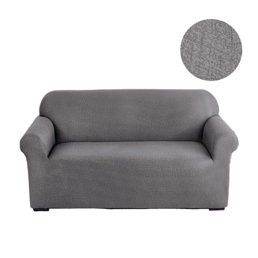- A three-seater stretch cover that hugs curves and fits a variety of sofa shapes.