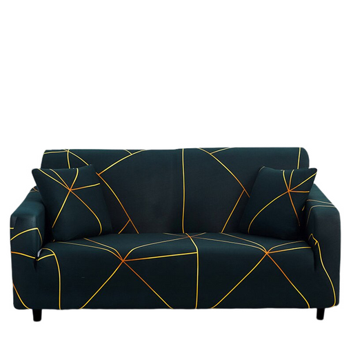 - A three-seater stretch cover that hugs curves and fits a variety of sofa shapes.