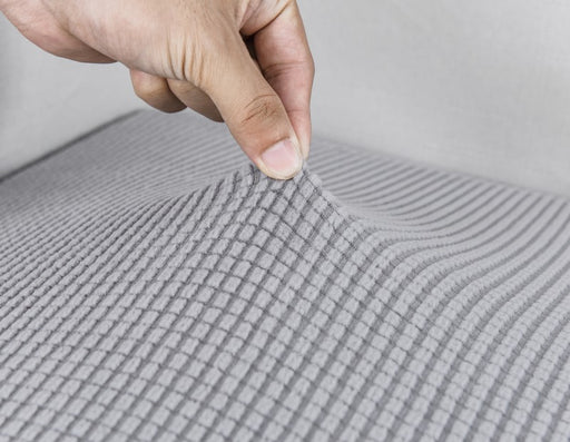 - A three-seater stretch cover that hugs curves and fits a variety of sofa shapes.
