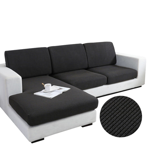 AnyseatSofa Cover Black Polyester Thick Stretchable Cushion For Living Room 1Pc Normal Size 145-185cm