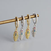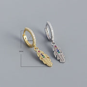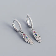 ANYCO Drop Fashion Earrings Luxury Zircon Feather Pendant Women Jewelry Gift Sterling Silver