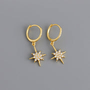 ANYCO Earrings Gold Plated Luxury Crystal Zircon Shining Light Star Stud For Women Girl Teen Chic Fashion Stylish Accessories Jewelry Gifts