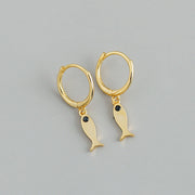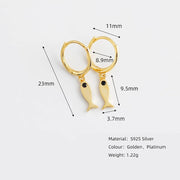 ANYCO Earrings Gold Plated Minimalist Black Zircon Fashion Chic Fish Stud For Women Girl Fashion Stylish Rock Punk Accessories Jewelry Gifts