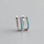 ANYCO Earrings Sterling Silver Charms Bohemian Blue Zircon U Shaped Ear Buckle For Women Girl Teen Fine Fashion Stylish Accessories Jewelry Gifts