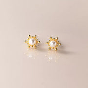 ANYCO Fashion Earrings Gold Cute Snowflake Synthetic Pearl Small Stud Earrings Chic Teen Piercing Jewelry for Women