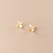 ANYCO Fashion Earrings Gold Plated 925 Sterling Silver Cute White Flower Stud for Women Teen Girl Jewelry Gift