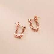 ANYCO Gold 925 Boho Link Chain Stud Earrings – Hollow Design for Women