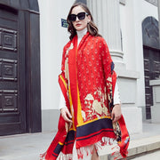 Anyyou 100% Pure Merino Wool Apple Red Poncho Winter Large Scarf Pashmina Shawl Bandana Neck Wrap For Women