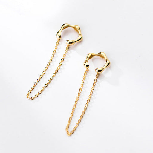 View full detailsANYCO Fashion Earrings Gold 925 Sterling Silver Punk Cuban Link Chain Bamboo Tassel Ear Cuffs Simple Bohemian Ear Clip Jewelry