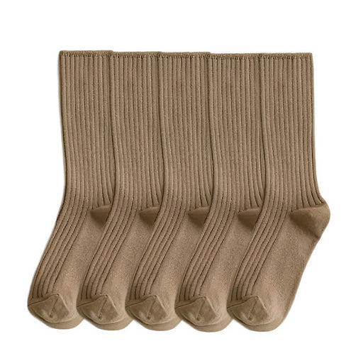View full detailsAnyfootwear 5 Pairs One Size 36-43 Khaki Retro Long Knitted Socks Cotton Autumn Winter Solid Color Women Student Girls
