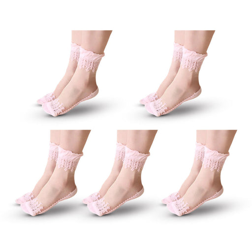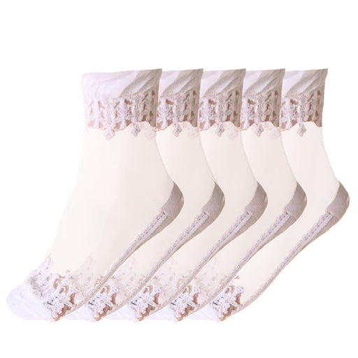 View full detailsAnyfootwear 5 Pairs White Size 5-9 Heart Tull Glass Silk With Transparent Thin Mesh Color Full Nylon Knee Sock ComFortable To Wear For Ladies