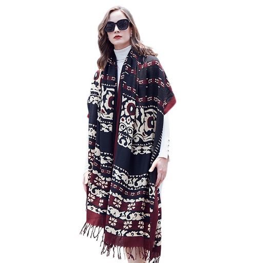 View full detailsAnyyou 100% Merino Wool Black Burgundy Silk Satin Large Winter Scarf Pashmina Shawl Bandana Perfect For Women Ladies Fashion Style