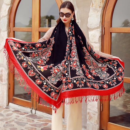 View full detailsAnyyou 100% Merino Wool Black Red Neck Wrap Silk Satin Large Winter Scarf Pashmina Shawl Bandana Perfect For Women Ladies Fashion Style