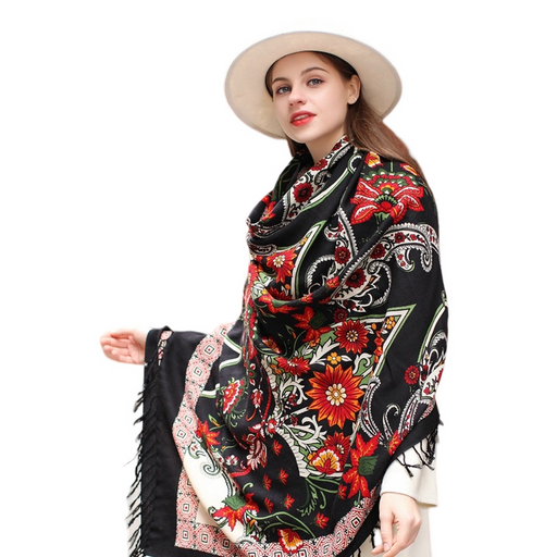 View full detailsAnyyou 100% Merino Wool Black Silk Satin Floral Silk Satin Large Winter Scarf Pashmina Shawl Bandana Perfect For Women Ladies Fashion Style