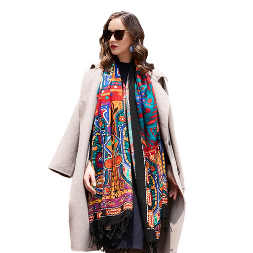 View full detailsAnyyou 100% Merino Wool Black Ancient Multi-Pattern Neck Silk Satin Large Winter Scarf Pashmina Shawl Bandana Perfect For Women Ladies Fashion Style