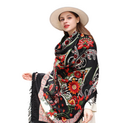 Anyyou 100% Merino Wool Black Silk Satin Floral Silk Satin Large Winter Scarf Pashmina Shawl Bandana Perfect For Women Ladies Fashion Style