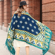 Anyyou 100% Merino Wool Blue Biege Silk Satin Large Winter Scarf Pashmina Shawl Bandana Perfect For Women Ladies Fashion Style