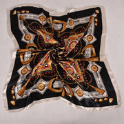 Anyyou Scarf for Women Gold Black Satin Silk Shawl Fashion Accessories Chain Flowers Pattern Autumn Winter Scarves