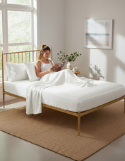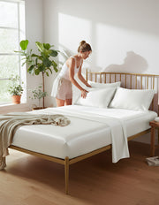 Anycozy Fitted Sheet 180x200cm White Luxury Silky Beddings Set with Pillow Cases