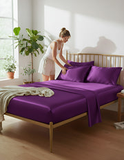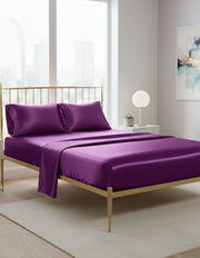 Anycozy Fitted Sheet Full Size Purple Luxury Silky Beddings Set with Pillow Cases