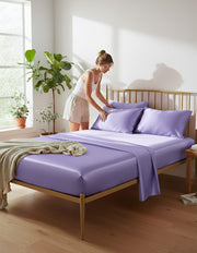 Anycozy Fitted Sheet Queen Size Light Purple Luxury Silky Beddings Set with Pillow Cases