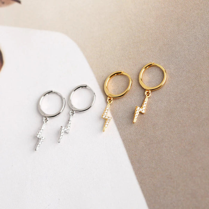 ANYCO Earrings Buckle Punk Lightning Piercing White Zircon Charms Goth Hoop For Women Party Jewelry Silver