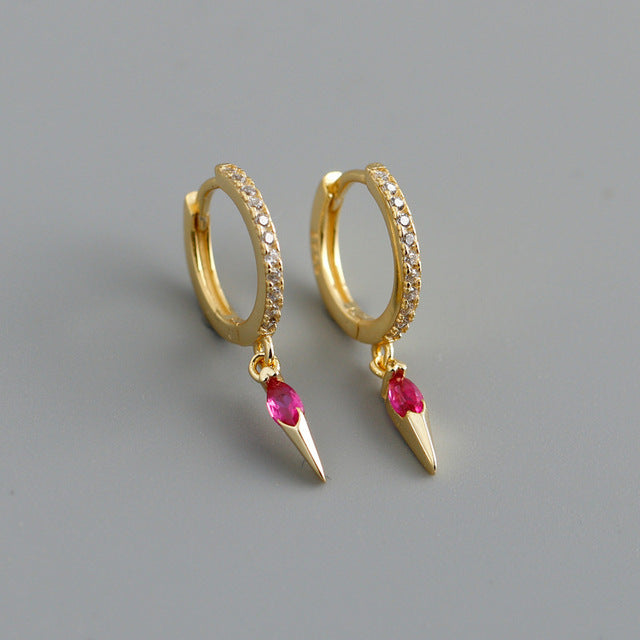 ANYCO Earrings Gold Plated Bohemian Geometric Red Zircon Hanging Tassel Stud For Women Girl Teen Fine Fashion Stylish Accessories Jewelry Gifts