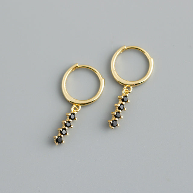 ANYCO Earrings Gold Plated Chic Charm Black Colored Zircon Bar Stud For Women Girl Teen Fine Perfect Fashion Stylish Accessories Jewelry Gifts