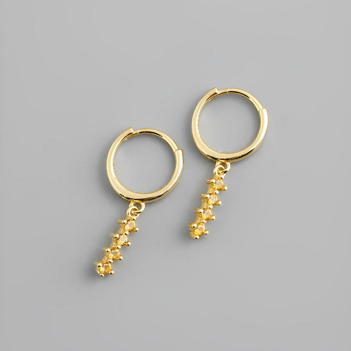 ANYCO Earrings Gold Plated Chic Charm Yellow Colored Zircon Bar Stud For Women Girl Teen Fine Perfect Fashion Stylish Accessories Jewelry Gifts