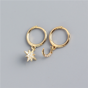 ANYCO Earrings Gold Plated Creative Asymmetric Star Moon Ear Stud For Women Girl Fashion Stylish Rock Punk Accessories Jewelry Gifts