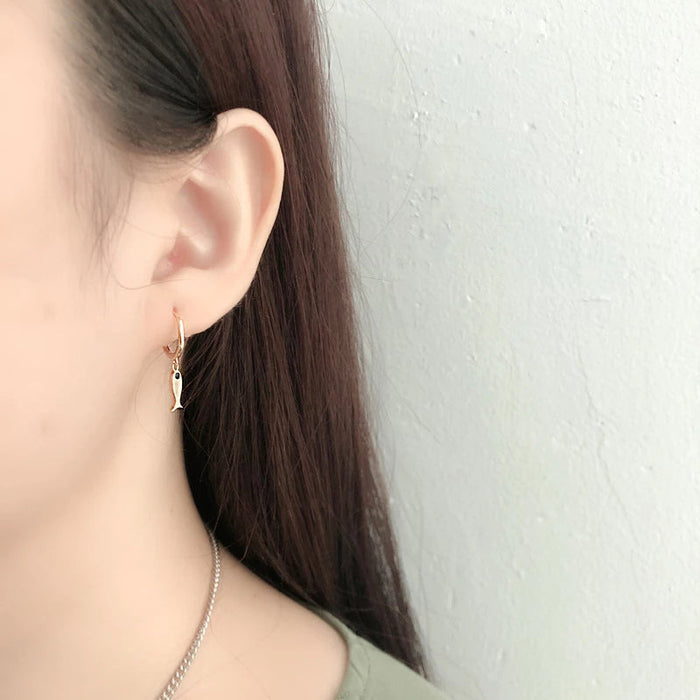 ANYCO Earrings Gold Plated Minimalist Black Zircon Fashion Chic Fish Stud For Women Girl Fashion Stylish Rock Punk Accessories Jewelry Gifts