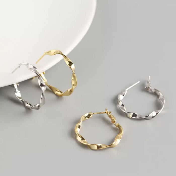 ANYCO Earrings Gold Plated Minimalist Round Circle Rotating Twist Stud For Women Girl Perfect Fashion Stylish Accessories Jewelry Gifts