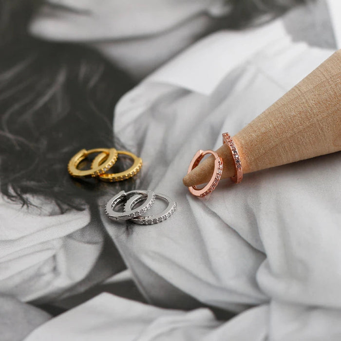 ANYCO Earrings Rose Gold White Minimalist Round Zircon Stud For Women Girl Teen Elegant Fashion Stylish Accessories Jewelry Gifts