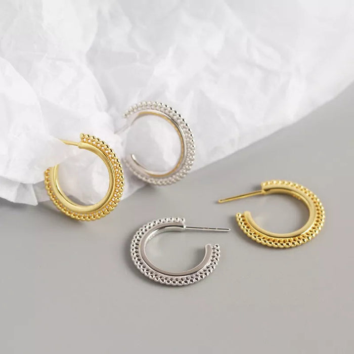 ANYCO Earrings Sterling Silver Bohemian Geometric Small Round Bead C-shaped Stud For Women Girl Perfect Fashion Stylish Accessories Jewelry Gifts