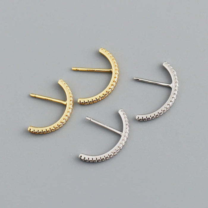 ANYCO Earrings Sterling Silver Chic Line Zircon Curved Stud For Women Girl Teen Fashion Stylish Accessories Jewelry Gifts