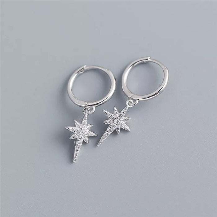 ANYCO Earrings Sterling Silver Crystal Zircon Ray Star Tassel Stud For Women Girl Fashion Stylish Rock Punk Accessories Jewelry Gifts