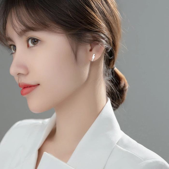 ANYCO Fashion Earrings Black 925 Sterling Silver Chic Charm Lightning Mini Small Stud for Women Punk Rock Black Minimalist Piercing Jewelry