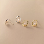 ANYCO 925 Silver Baroque Pearl Stud Earrings – Gold Hollow Design for Women