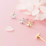 ANYCO Fashion Earrings Gold 925 Sterling Silver Sweet Bowknot Crystal Zircon Small Stud for Women Ladies Jewelry