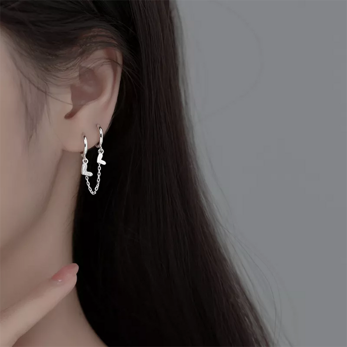ANYCO Fashion Earrings Silver 925 Sterling Unique Love Heart Chain Charm for Women Bohemian Fine Party Ear Buckle Jewelry