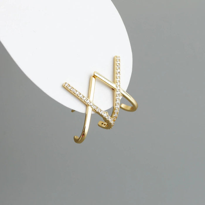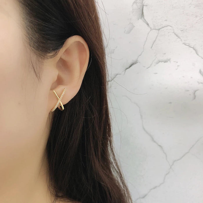 ANYCO Stud Earrings Letter X Bohemia Punk Cross White Zircon Bohemia Charms for Women Party Rock Jewelry Gift Gold