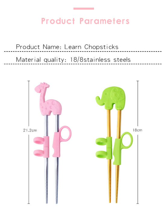 Anygleam Chop Stick Green Elephant 1 Pair Reusable Silver Stainless Steel Cartoon for Kids and Children Kitchen Accessories