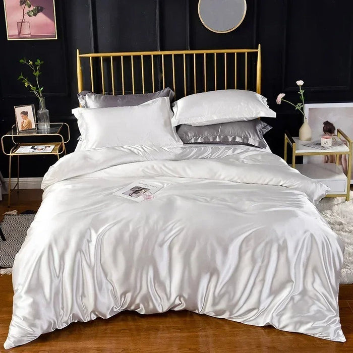 Anycozy Beddings White AU Double Size 3 Pcs High End Satin Smooth Duvet Cover Set Luxury Polyester Silky Soft Cozy Bedding Set